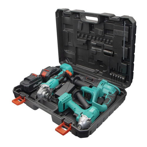 کیت 3 عددی براشلس با دستگاه های با کیفیت خریدی مقرون به صرفه محسوب می شود. این مجموعه دارای یک عدد بتن کن سه حالته یعنی سوراخکاری چکشی،سوراخکاری ساده و چکشی جهت تخریب می باشد، که سرعت آن 1500 دور بر دقیقه می است که با مته های 4 شیار تا سایز 26 و کمی بالاتر می توان از آن استفاده کرد که سرعت آن قابل تنظیم است. به علاوه یک عدد مینی فرز با نهایت سرعت 5600 دور بر دقیقه که سرعت آن قابل تنظیم است. همینطور یک آچار بکس با گشتاور 280 نیوتن متر که آن هم سرعت قابل تنظیم دارد. این کیت با دو عدد باتری 21 ولت 4 آمپر لیتیومی واقعی عرضه می شود. این مجموعه دارای یک کیف حمل bmc ضد ضربه، یک عدد بکس سایز 22،دسته اضافه و .... می باشد.