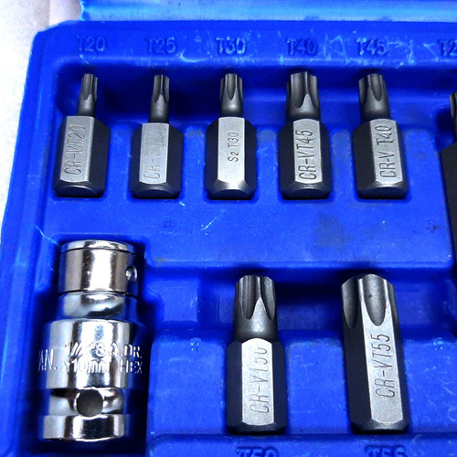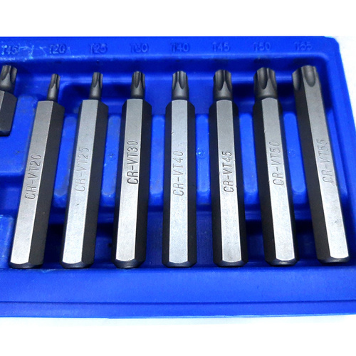 شامل 7 عدد بیت 7.5 سانتی متر -T20 - T25 - T30 - T40 -T45 - T50 - T55 , و شامل 7 عدد بیت 3 سانتی متر شامل T20 -T25- T30- T40 - T45 - T50 - T55 و یک عدد هولدر درایو 1/2