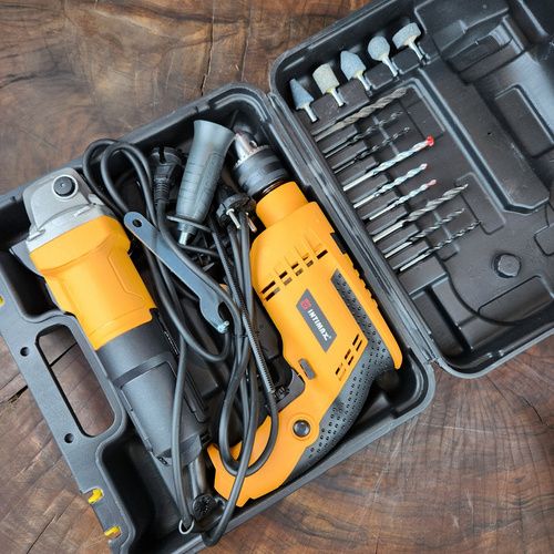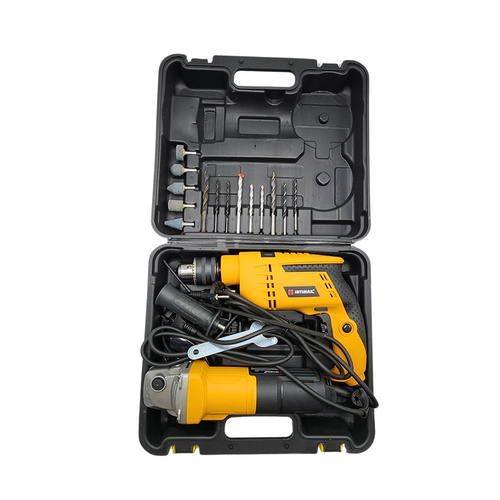 مجموعه دوعددی مینیفرز و دریل شامل یک مینیفرز با توان 1500 وات و سرعت گردش 10800 دور در دقیقه که مناسب کارهای سنگین مانند برش، سایش و پولیش میباشد و شامل یک دریل 13 میلیمتر با سهنظام فلزی و توان 1200 وات میباشد که قابلیت تنظیم سرعت نیز دارد. این مجموعه دارای یک جعبه نیز میباشد.