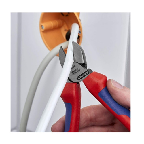 انبر 7002160 کنیپکس یک ابزار جمع و جور واستاندارد مناسب برای قطع کردن تمام کابل های تک رشته ، چند رشته و ریز رشته از 0.2 تا 4.0 میلی متر با عایق استاندارد فشرده چند لایه با مقاومت در برابر جریان برق 500 ولت. سیم چین 7002160 کنیپکس یک ابزار حرفه ای برای برش انواع سیم های نرم و سخت است. این انبر طراحی ارگونومیکی دارد و به خوبی درون دست جای می گیرد و در هنگام استفاده نیازی به اعمال فشار زیادی برای برش سیم نیست. ابعاد کوچک این سیم باعث می شود تا برای استفاده از آن در فضاهای کوچک دچار مشکل نشوید. از مزایای این سیم چین می توان به دقت بالای آن در برش و همچنین طول عمر طولانی آن اشاره کرد. انبر 7002160 کنیپکس دارای 20 درصد قدرت برش و طول عمر بیشتر نسبت به تمامی برند های مطرح دنیا. انبر 7002160 کنیپکس دارای استاندارد CE اروپا می باشد که مطابق با دستور العمل تولید اروپا تولید گردیده. انبر 7002160 کنیپکس دارای استاندارد GS می باشد که تست شده بر اساس VED (استاندارد ایمنی آلمان) که با استاندارد GPSG جهانی انطباق دارد.